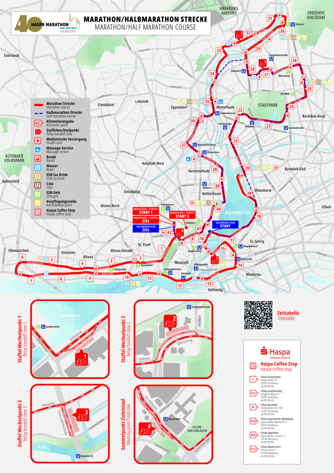 Der HASPA MARATHON HAMBURG bietet eine einmalige Sightseeing Tour durch die Stadt mit sämtlichen Highlights der Elbmetropole. Hamburg ist schnell und nahezu topfeben, mit kleinen Rampen, die durch eine unvergleichbare Zuschauerbegeisterung geglättet werden.